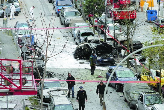 12月30日,在希腊雅典,警方调查人员勘察爆炸现场。 新华社发