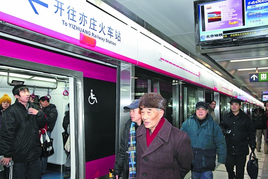 12月30日,市民乘坐新开通的亦庄线地铁。当日下午,北京地铁房山线、昌平线一期、15号线首开段、亦庄线和大兴线5条新线路同时开通运营,开通总长度达108公里。 新华社发