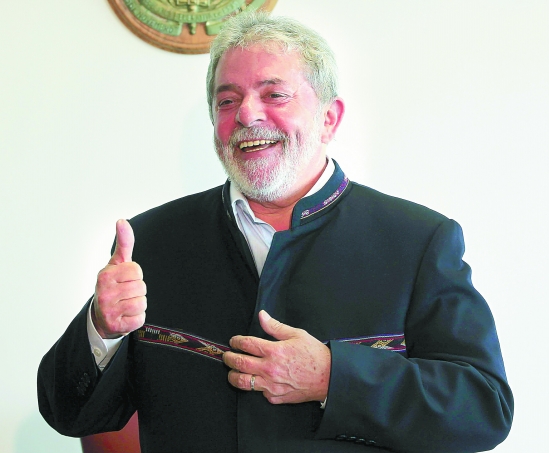 ④在巴西首都巴西利亚,巴西总统卢拉竖起大拇指。巴西将于2011年1月1日举行总统权力交接仪式,巴西当选总统迪尔玛·罗塞夫将正式就职,卢拉也将于同日正式卸任。