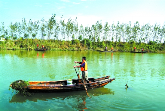 长兴县夹浦乡河道保洁员在工作