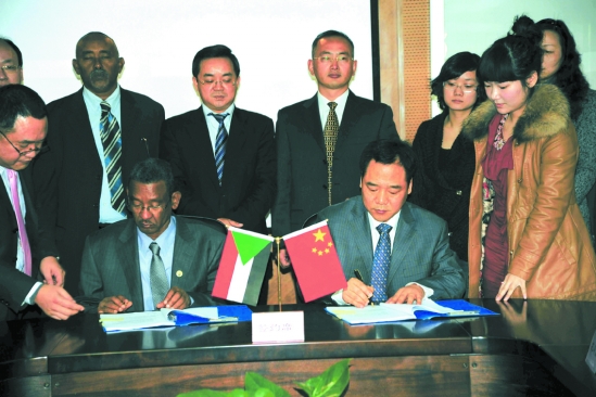 建工设计院院长庄月金代表中国政府与苏丹政府签署援苏丹总统府新办公楼项目对外合同