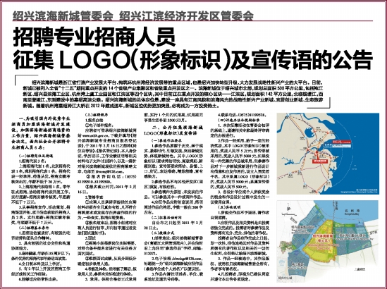 一、为吸引国内外优秀专业招商员加盟滨海新城开发建设,加强滨海新城招商选资的工作力量,绍兴滨海新城管委会决定,面向社会公开招聘专业招商人员6名: