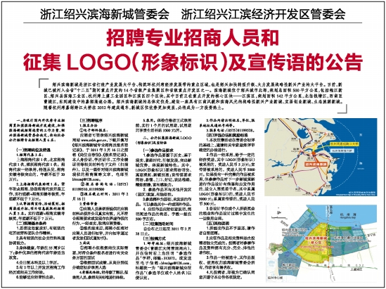 一、为吸引国内外优秀专业招商员加盟滨海新城开发建设,加强滨海新城招商选资的工作力量,绍兴滨海新城管委会决定,面向社会公开招聘专业招商人员6名: