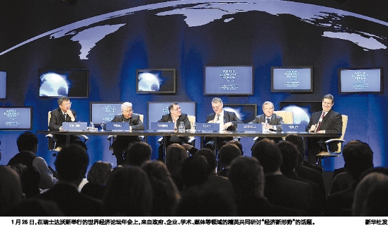 1月26日,在瑞士达沃斯举行的世界经济论坛年会上,来自政府、企业、学术、媒体等领域的精英共同研讨“经济新形势”的话题。 新华社发