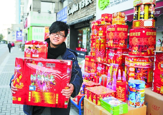 春节临近,杭州的烟花销售点摆开阵势,迎接销售高峰。滨江滨盛路上,售货员正在摆放烟花,准备在节前大卖一场。黄佳健 李缪虹 摄
