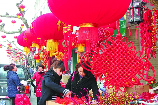 1月31日,玉环县楚门街头,人们正在选购红灯笼,为新春佳节增添喜庆气氛。吴达夫 摄