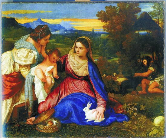 下:提香油画 《圣母与白兔》