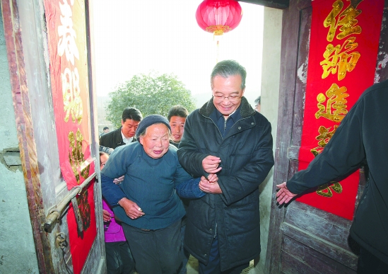 温家宝总理在桃岭乡赵院村看望村民。 新华社记者 姚大伟 摄