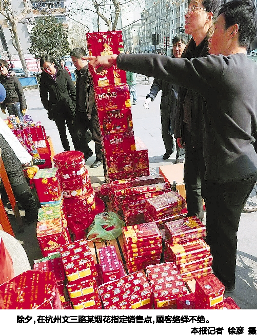 除夕,在杭州文三路某烟花指定销售点,顾客络绎不绝。