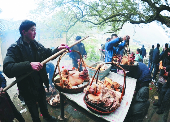 大年三十,松阳县大东坝镇石仓古民居前,村民们准备过节。CFP供图