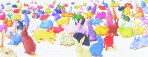 兔子的眼睛分为红色、蓝色、茶色、黑色、灰色等颜色,也有的兔子左右两只眼睛的颜色是不一样的。眼睛的不同颜色和它们身体内的不同色素有关,含灰色素的兔子不仅皮毛是灰色的,它们的眼睛也是灰色的;含黑色素的兔子,毛和眼睛是黑的。白兔身体里由于不含色素,它的眼睛是无色的,但通常我们看到它们的眼睛是红色的,其实这不是眼球的颜色,而是眼球中毛细血管里血液的颜色。