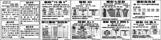 更多信息查询:浙江体育彩票网 www.zjlottery.com