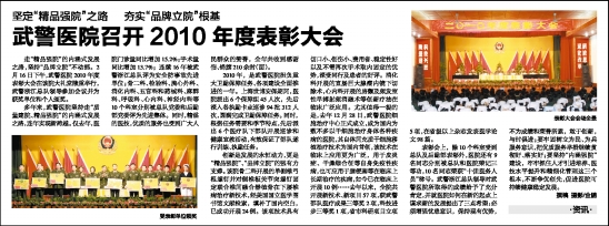 走“精品强院”的内涵式发展之路,坚持“品牌立院”不动摇。2月16日下午,武警医院2010年度表彰大会在该院大礼堂隆重举行,武警浙江总队领导参加会议并为获奖单位和个人颁奖。