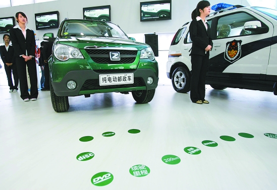 浙江众泰汽车推出电动邮政车和电动警车。记者 董旭明 摄