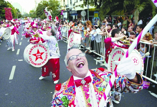 3月7日,在阿根廷首都布宜诺斯艾利斯,当地民众举行狂欢节街头游行。根据阿根廷政府颁布的法令,从2011年起阿根廷恢复狂欢节假期。这一传统假日在35年前被阿根廷军政府取消。 新华社发(马丁·萨巴拉 摄)