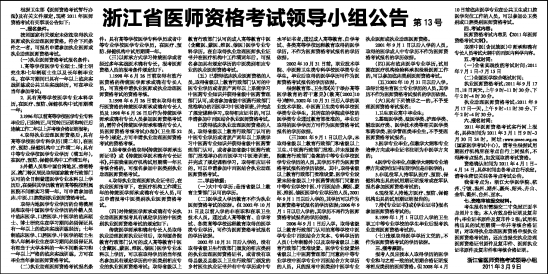 根据卫生部《医师资格考试暂行办法》及有关文件规定,现将2011年医师资格考试有关事项公告如下:
