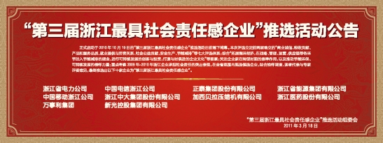 “第三届浙江最具社会责任感企业”推选活动公告