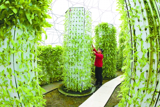 诸暨市农民邵华从国外引进汽雾栽培蔬菜、瓜果新技术,比传统种菜产量增长16倍,且全部为无公害蔬菜。诸暨日报社记者 郭斌 通讯员 冯钰 摄