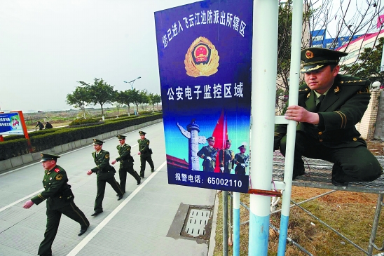 瑞安市飞云江边防派出所在辖区安装30多个电子监控牌,提醒群众注意安全。蔡宽元 摄