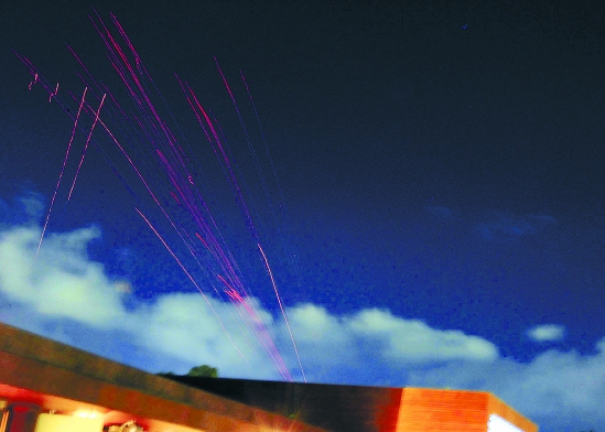 3月21日,利比亚首都的黎波里防空炮火向空中射击。 新华社发