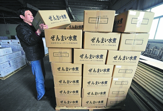 3月20日,衢州市龙游外贸笋厂内,工人们在紧张生产水煮笋,以改善日本灾后的食品供应。CFP供图