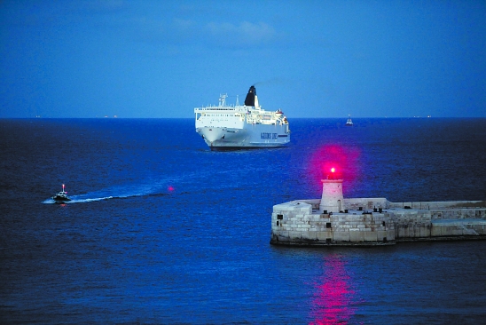 3月29日,搭载自利比亚撤出人员的轮船缓缓驶入马耳他瓦莱塔一港口。 新华社发