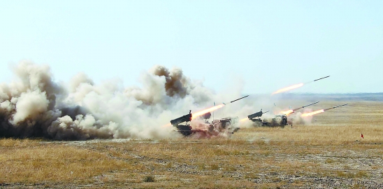 资料照片:2010年 9月22日,在哈萨克斯坦马特布拉克训练场,参加“和平使命―2010”联合反恐军事演习实兵演练预演的联演部队发射火箭弹。中国派兵参加了这次演习。 新华社发