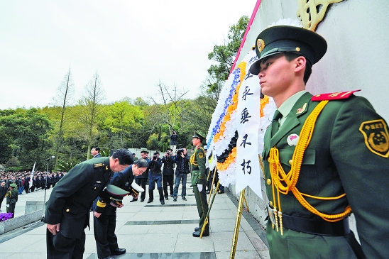 在舟山革命烈士陵园,部队官兵和社会各界人士缅怀革命先烈。沈磊 摄
