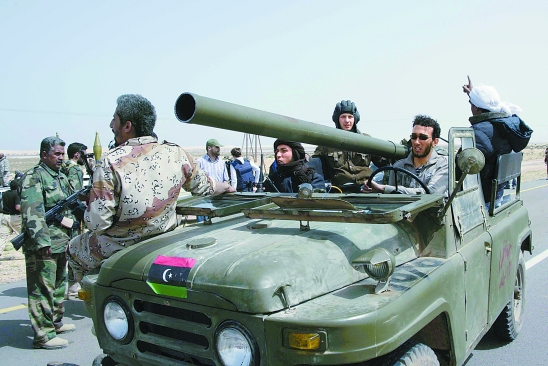 面临政府军炮火,3月30日,部分利比亚反政府武装开始从苏尔特附近地区撤离。 新华社发