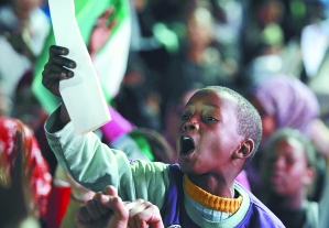 | 3月31日,一名儿童在的黎波里跟随家长参加保护卡扎菲的“人盾”行动。 新华社发 |
