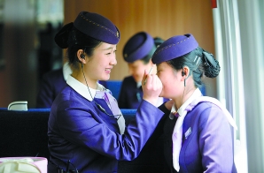 每天工作时,她会遇到各式各样的人。有人问关于动车方面的专业知识,她有时答不上来还会害羞,回家后赶紧找资料,以备下次用。有时,遇上个别因两元手续费来找说法的乘客,她需要花十几分钟加上解释,但不管怎样,都要微笑相待,合理解决。这样的工作,刘宏说:“真的很累,但很喜欢。”