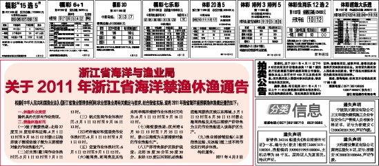 关于2011年浙江省海洋禁渔休渔通告