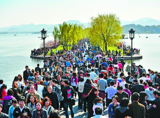 4月4日,雨后的杭州迎来艳阳天,西子湖畔桃红柳绿、花开正艳,苏堤、白堤、太子湾公园等风景点里游人如织。本报记者 吴国方 摄