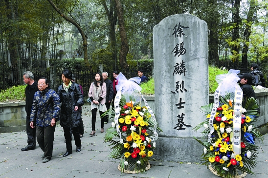 徐锡麟后人徐乃英(左二)在烈士墓前。