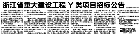 浙江省重大建设工程Y类项目招标公告