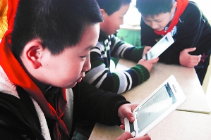 | 试点学校江苏省扬州市三元桥小学的学生在试用电子书课本。CFP供图 |