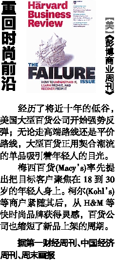 梅西百货(Macy’s)率先提出把目标客户聚焦在18到30岁的年轻人身上。柯尔(Kohl’s)等商户紧随其后,从H&M等快时尚品牌获得灵感,百货公司也缩短了新品上架的周期。