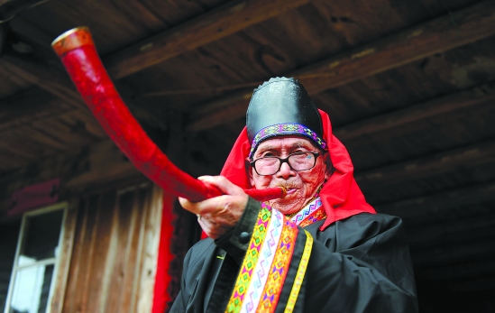 相传法师龙角吹到哪,哪里就平安、祥和。