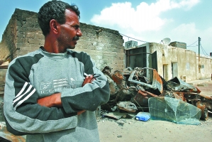| 4月7日,在利比亚艾季达比耶,一名男子注视被炸毁的汽车。 新华社记者 才扬 摄 |