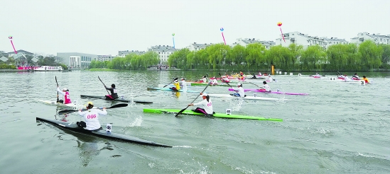参赛选手在绍兴环城河上角逐。新华社发