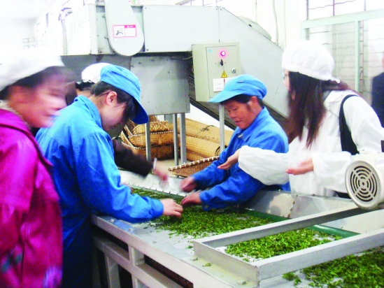| 自2009年以来,浙江更香有机茶业开发有限公司先后获得农发行投放的产业化龙头企业短期贷款3笔,累计金额5700万元,企业生产规模迅速跃上新台阶。目前,该公司有机茶园面积达4万亩,占全国8%。在占地2万多平方米的“更香有机茶生产综合生态园区”内,拥有6条清洁化生产线,年生产能力达430吨。该公司现在有机茶茶园面积、产量和销量均居全国第一,成为中国有机茶第一品牌,并带动十万多茶农增收致富。图为日前“更香有机茶生产综合生态园区”生产线上忙碌的制茶场景。 余干明 摄 |