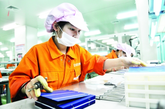 | 近期,日本地震造成的核泄漏事故给太阳能光伏产业带来新的发展机遇,国内不少光伏企业正密切关注全球新能源战略的新进展,拟以扩产应对。据悉,目前,我国太阳能光伏电池产量已连续4年居世界第一,但国内市场亟待进一步完善。 据浙江太阳能行业协会统计,截至3月初,我省共有176家太阳能光伏企业,而最近半年内就猛增了78家。图为近日在宁海东方日升新能源股份有限公司的制造车间,工人正在装配光伏电池片。 郏策 摄 |