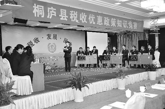 近日,桐庐县国税局、地税局联合组织全县税收优惠政策知识竞赛,竞赛分企业组、税务组进行。图为税务组竞赛场面。 邵晓泉 曹琳 摄