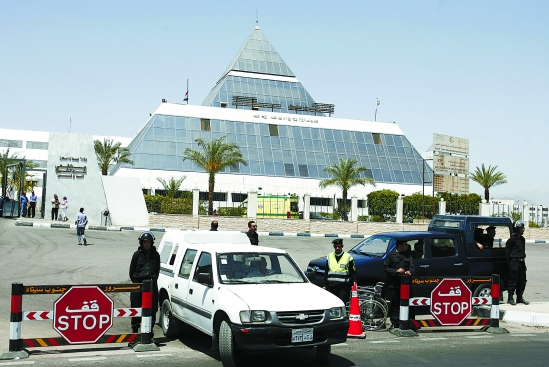 4月13日,警察在沙姆沙伊赫国际医院外警戒,穆巴拉克正在该院接受治疗。 新华社发