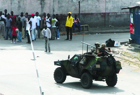 4月12日,一辆武装车辆经过科特迪瓦经济首都阿比让街头。 新华社发