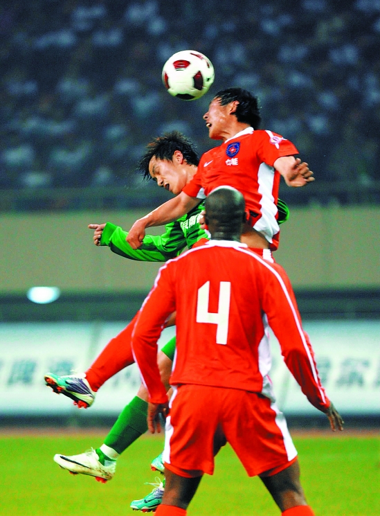 杭州绿城对青岛中能的比赛在进行中。陈熙春 潘良干摄