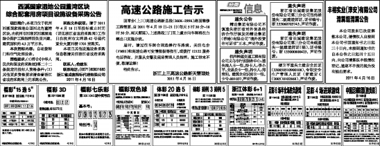 因常台(上三)高速公路新昌段(260K-299K)路面整修工程需要,自2011年4月19日~21日(每天5时30分~18时30分,雨天顺延),上述路段三门至上虞方向车辆将在白鹤出口实施分流。