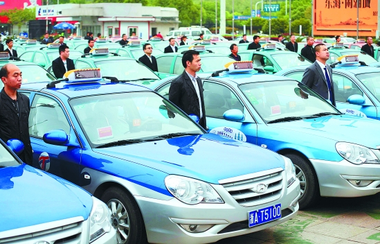 昨日上午,杭州标准化示范出租车、第二批30辆党员示范出租车在黄龙体育中心上路运营。 李翔 胡元勇 摄