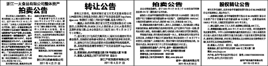受转让方委托,我所对浙江省文化艺术发展有限公司2.9%股权转让的信息分别在:浙江产权交易信息网http://www.zjpse.com 和《浙江日报》上同时进行披露,信息内容如下:
