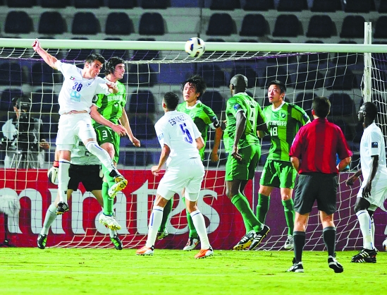 4月20日,在阿联酋阿布扎比举行的亚冠联赛比赛中,杭州绿城队客场以0比1不敌阿联酋阿尔艾因队。记者 潘良干 摄